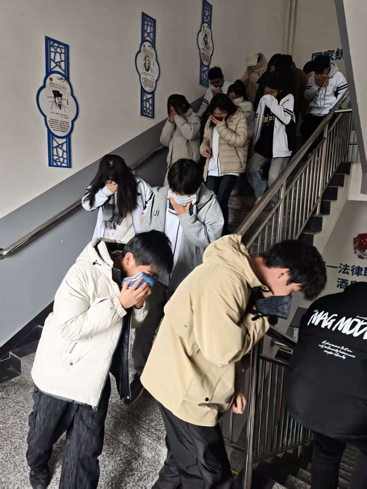 在实地演练环节,学院精心设置了模拟火灾场景。随着警报声响起,浓烟滚滚,同学们迅速反应,用湿毛巾紧紧捂住口鼻,在引导员清晰而有力的指挥下,沿着楼梯有序撤离。他们的眼神中透露出紧张与专注,脚步匆匆却秩序井然,迅速地从“火场”转移到安全区域。而在灭火器使用培训中,专业人员首先详细讲解了灭火器的种类、适用范围和操作要点,随后同学们亲自上阵,按照“提、拔、握、压”的操作步骤,对准模拟火源进行灭火操作。当白色的粉末喷出,火势迅速得到控制,同学们的脸上露出了成功的喜悦和自信的笑容。
