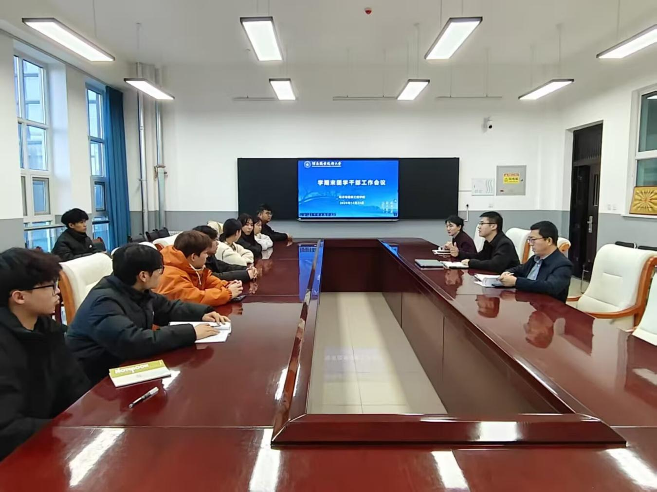 12月24日,电子与信息工程学院召开学期末团学干部工作会议,副院长张吉强主持会议,团委书记李春燕、辅导员王国荣及团委、学生会各部门主要负责人参会。
