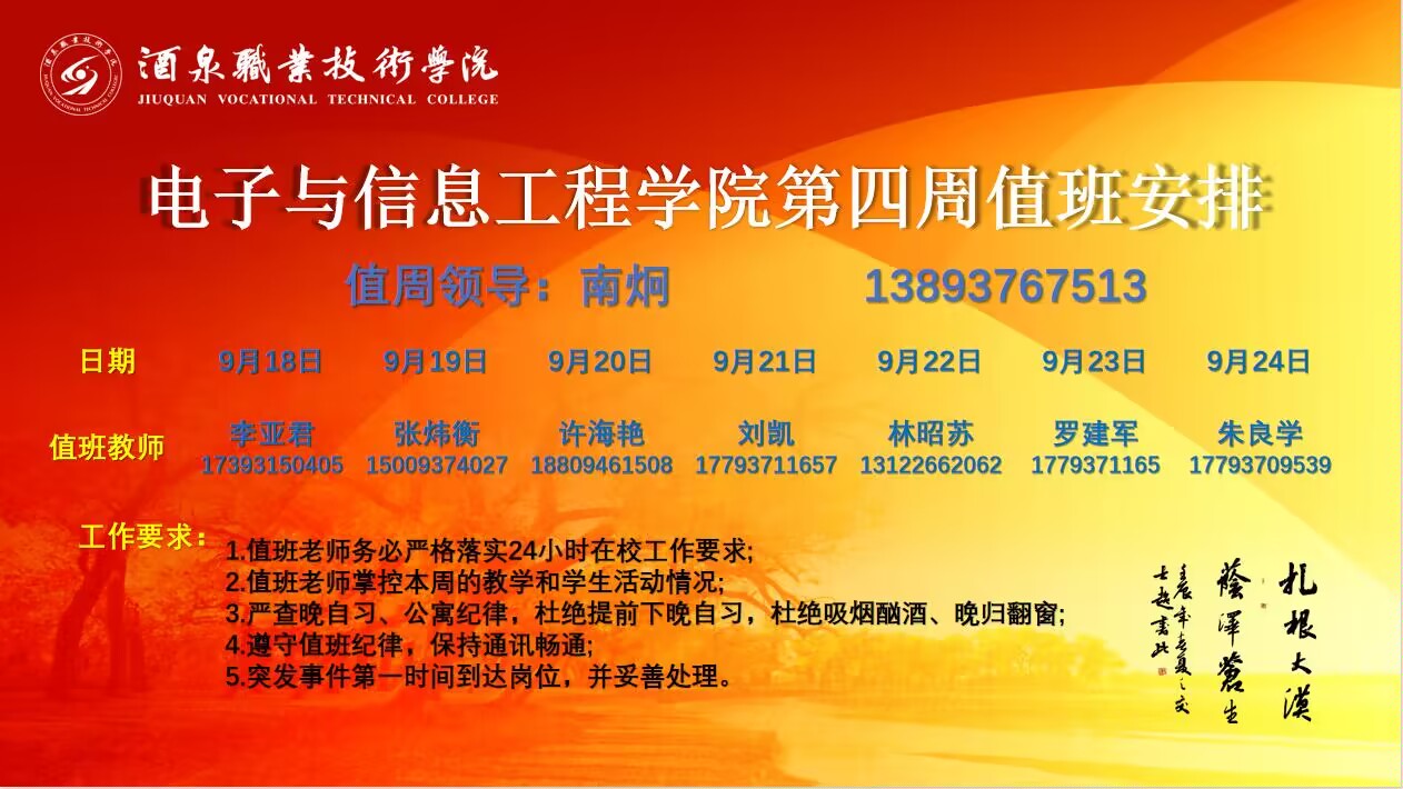第四周值周安排(9.18~9.24)