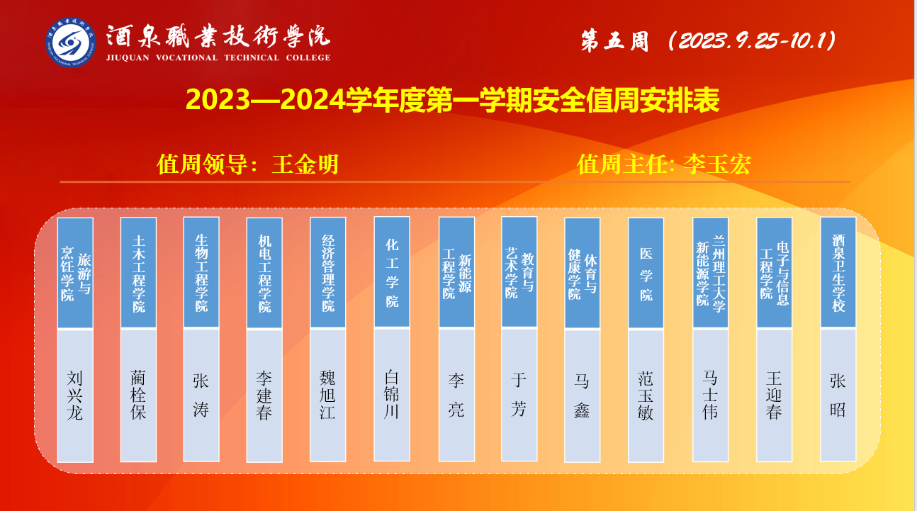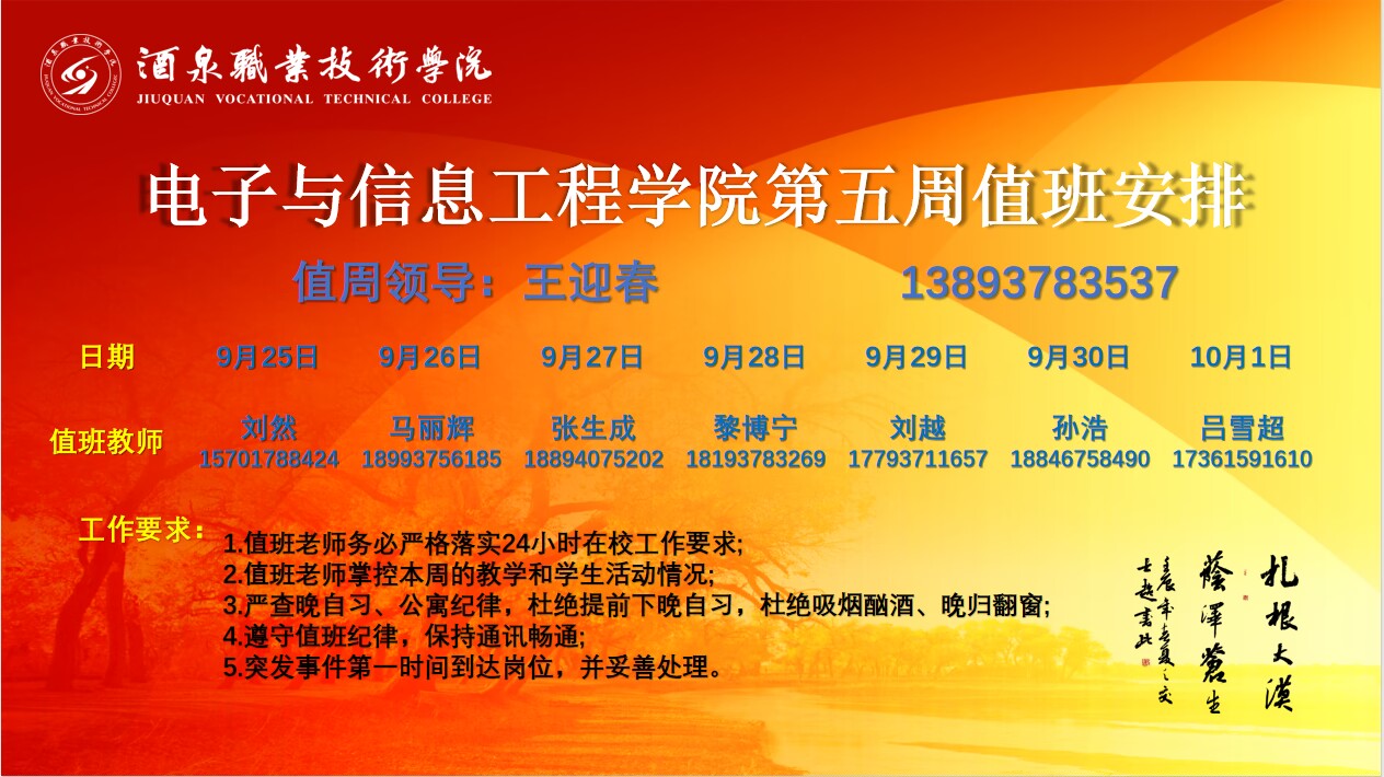 第五周值周安排(9.25~10.1)