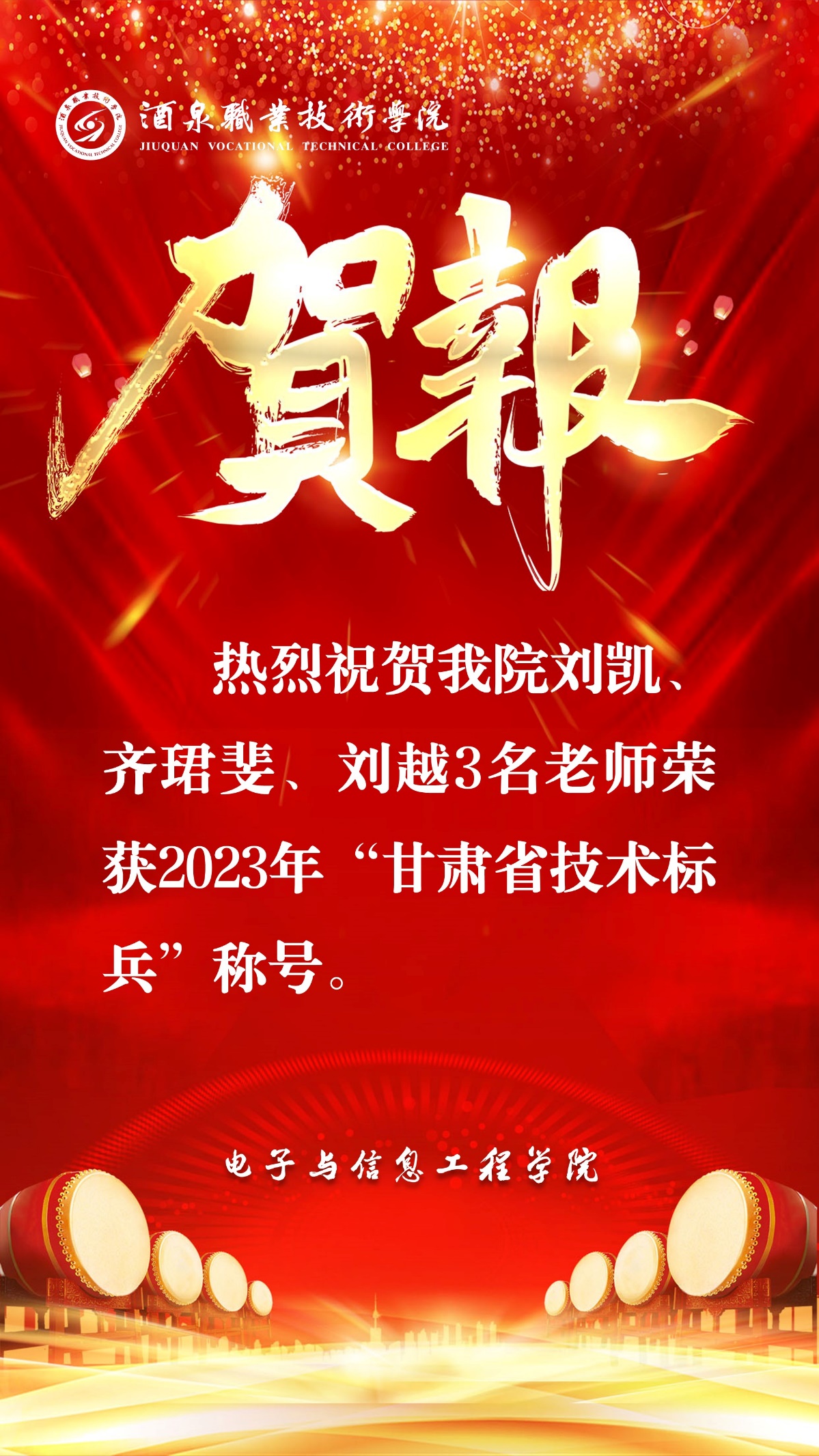 喜报-我院教师荣获甘肃技术标兵荣誉称号