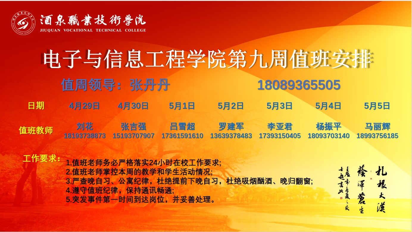 第九周值班安排(4.29~5.5)