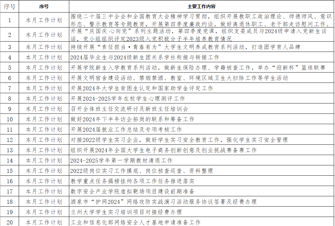 电子与信息工程学院10月份工作计划