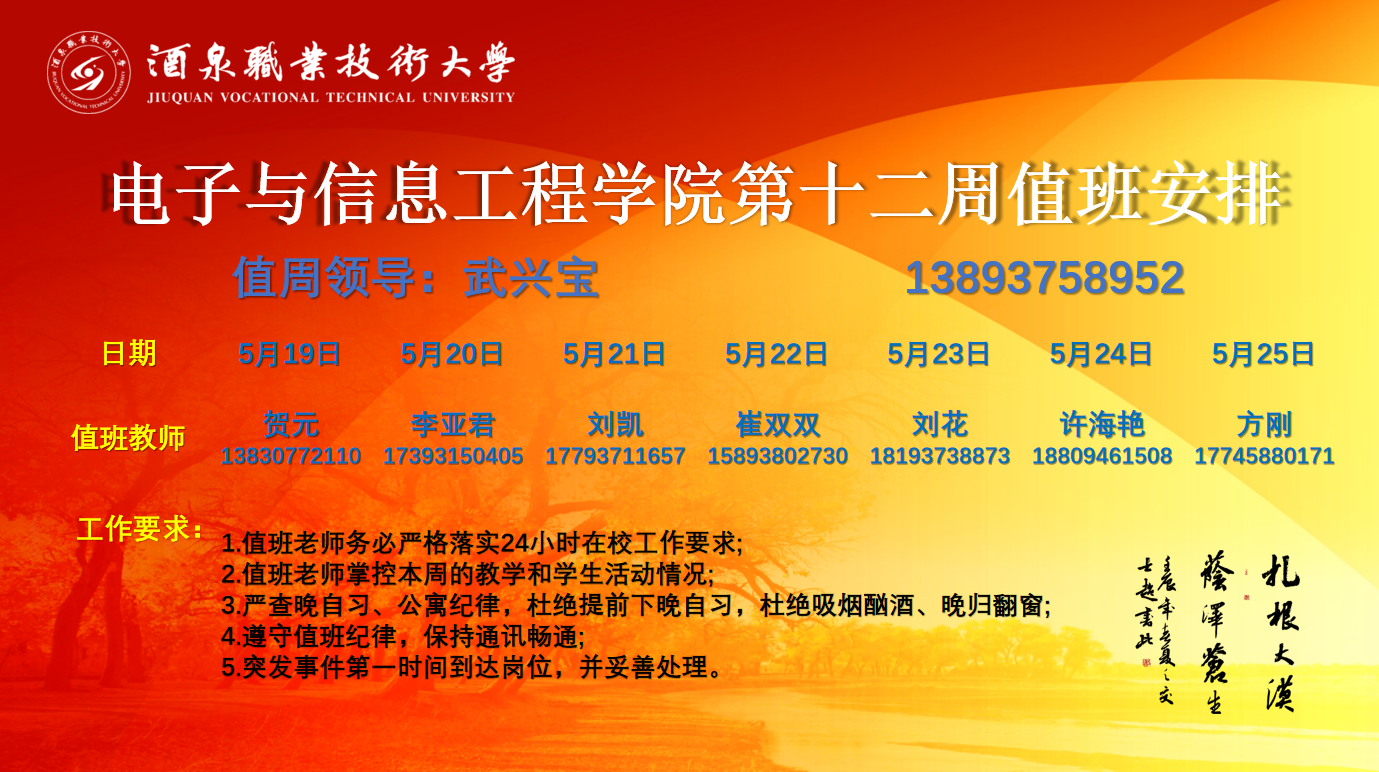 第十二周值周安排(5.19-5.25)