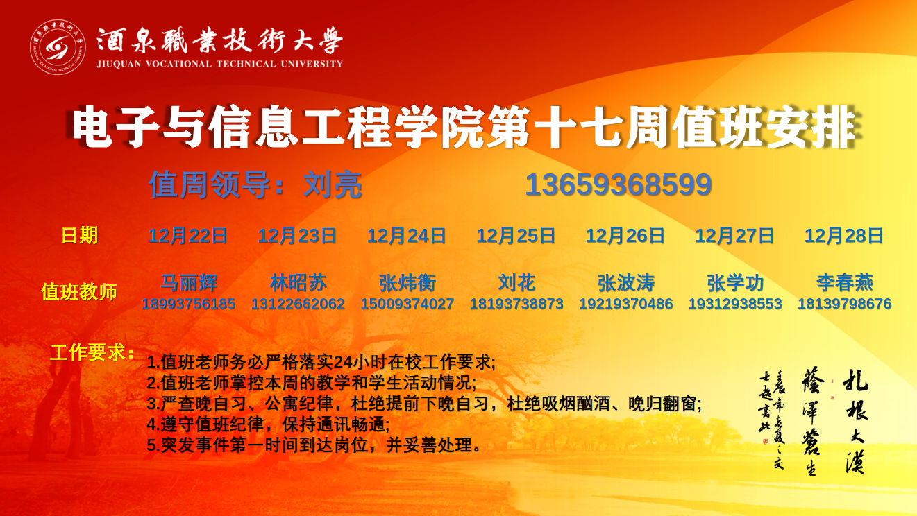 第十七周值班安排(12.22-12.28)