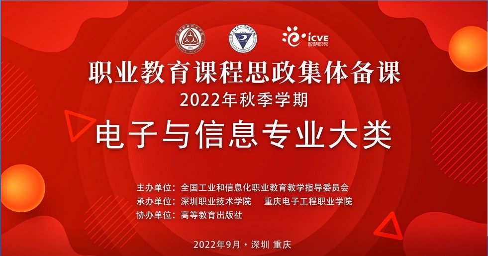 为继续深化学院教师对课程思政的认识与理解,进一步提升我院思政课教学质量,加强思政课教师能力建设,9月24日,我院组织全体专兼职教师参加了2022年度全国职业院校电子与信息专业大类课程思政集体备课会,会议由全国工业和信息化职业教育教学指导委员会主办,深圳职业技术学院与重庆电子工程职业学院承办。