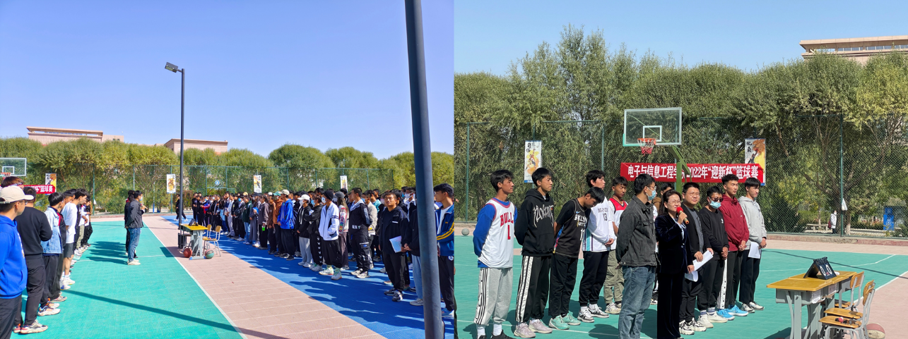 为促进我院学生相互了解、增进友谊,营造积极拼搏、团结向上的竞争氛围,调动广大同学参与体育运动的积极性,充分展现我院学生热情奔放的青春气息,增强同学们的集体荣誉感,引导同学们走下网络、走出宿舍、走向操场,我院在2022年10月6日在工科实训楼前篮球场举行了我院成立以来首届“热血青春、以球会友”电子与信息工程学院“迎新杯”球类赛项的开幕式及第一场篮球比赛对决,以此迎接的新学期、迎接新同学到来!我院主管学生工作副院长王迎春院长、学生工作办公室刘凯老师和班主任王玉祥老师前来开幕式观看第一场比赛。