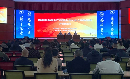 4月24日上午,酒泉市食品生产经营企业从业人员培训班开班仪式在酒泉职业技术学院胡杨文化活动中心顺利召开,酒泉市市场监督管理局党组成员、副局长贺俊福,酒泉职业技术学院党委委员、副校长王金明出席仪式。仪式由酒泉职业技术学院电子与信息工程学院党支部书记、院长武兴宝主持。