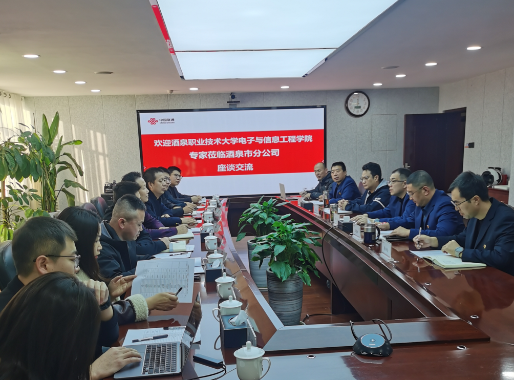 11月11日早晨,酒泉职业技术大学电子与信息工程学院与酒泉市联通公司开展校企合作专项洽谈。酒泉联通公司党委书记、总经理顾峰,党委委员、副总经理王亚红、张翼翔等领导,学院班子成员及网络通信系教师代表参加了会议。