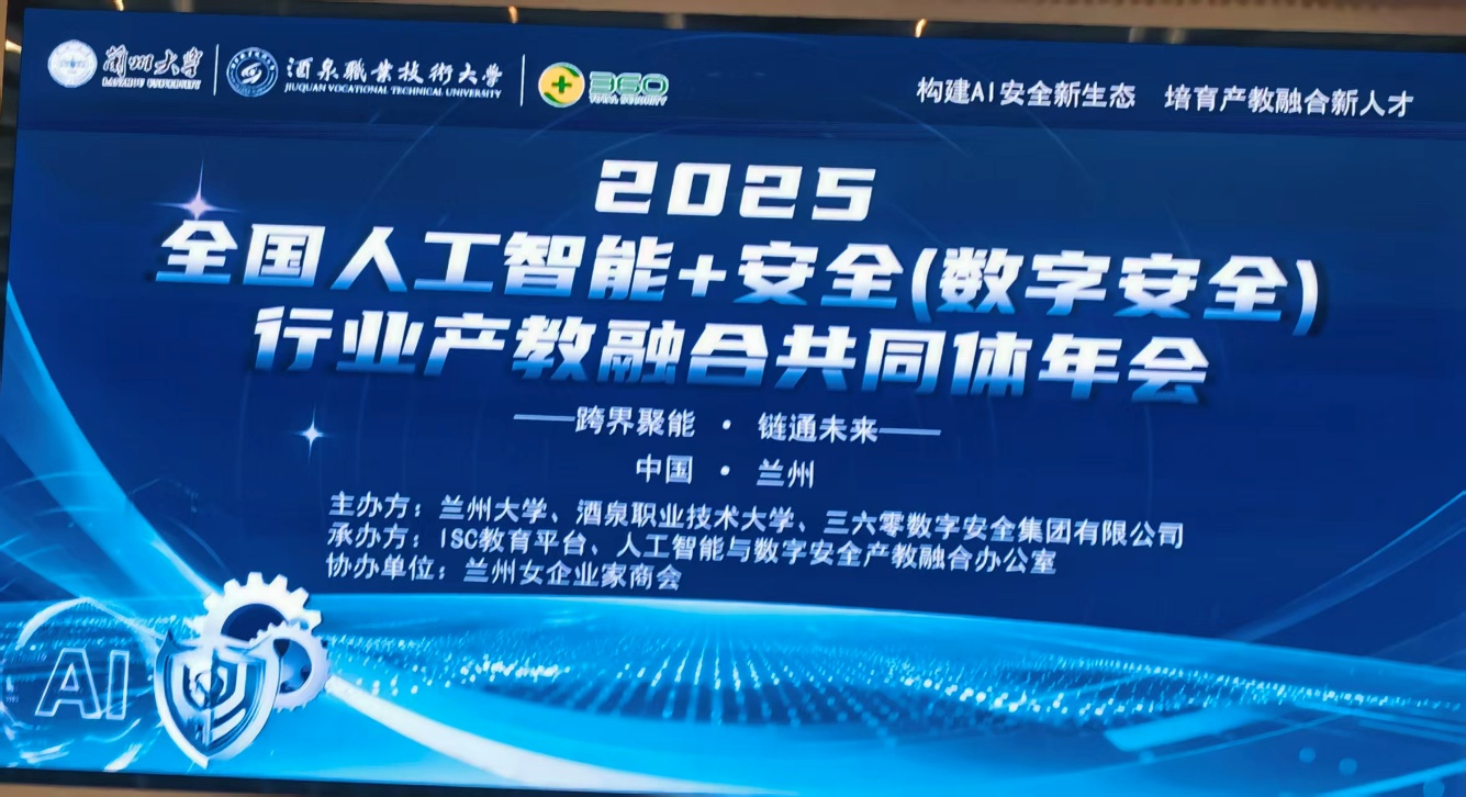 11月28日,以“跨界聚能·链通未来——构建ai安全新生态,培育产教融合新人才”为主题的2025全国人工智能+安全(数字安全)产教融合共同体年会,在兰州大学城关校区大学生活动中心报告厅隆重召开。本次年会由兰州大学、酒泉职业技术大学、360数字安全集团联合主办,兰州女企业家商会协办,汇聚政府部门、高校院所、行业企业、研究机构等多方力量,共商人工智能与数字安全领域产教融合发展大计,推动人才培养与产业发展深度融合。