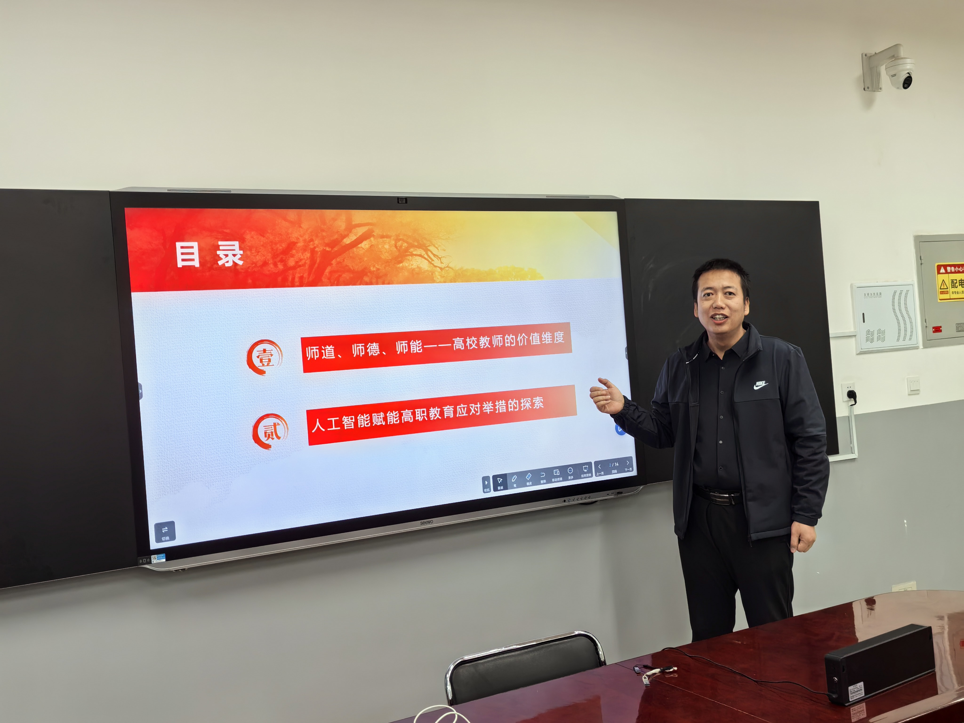副书记刘亮、副院长张吉强等9位参加国培省培教师汇报了培训心得。他们围绕师德师风建设、人工智能技术应用、数智赋能职业教育等方面,介绍了行业最新动态、技术应用前景,并结合学院实际,就更新教学理念、推进教学改革、创新教学方法等方面提出了可借鉴的方案和措施。